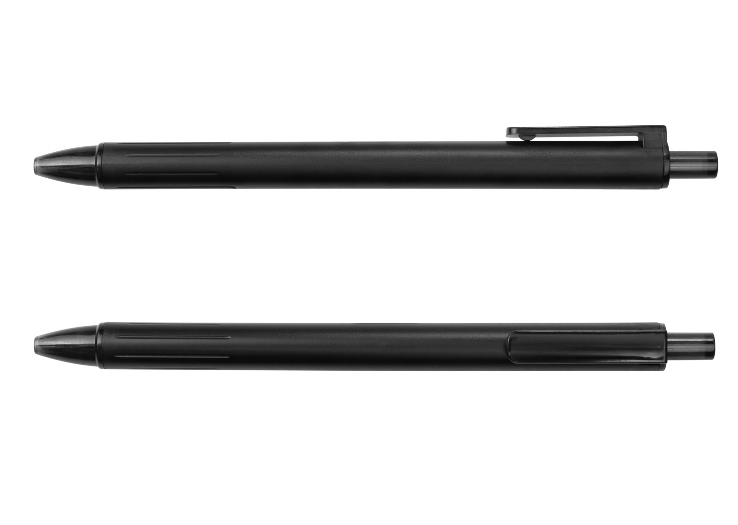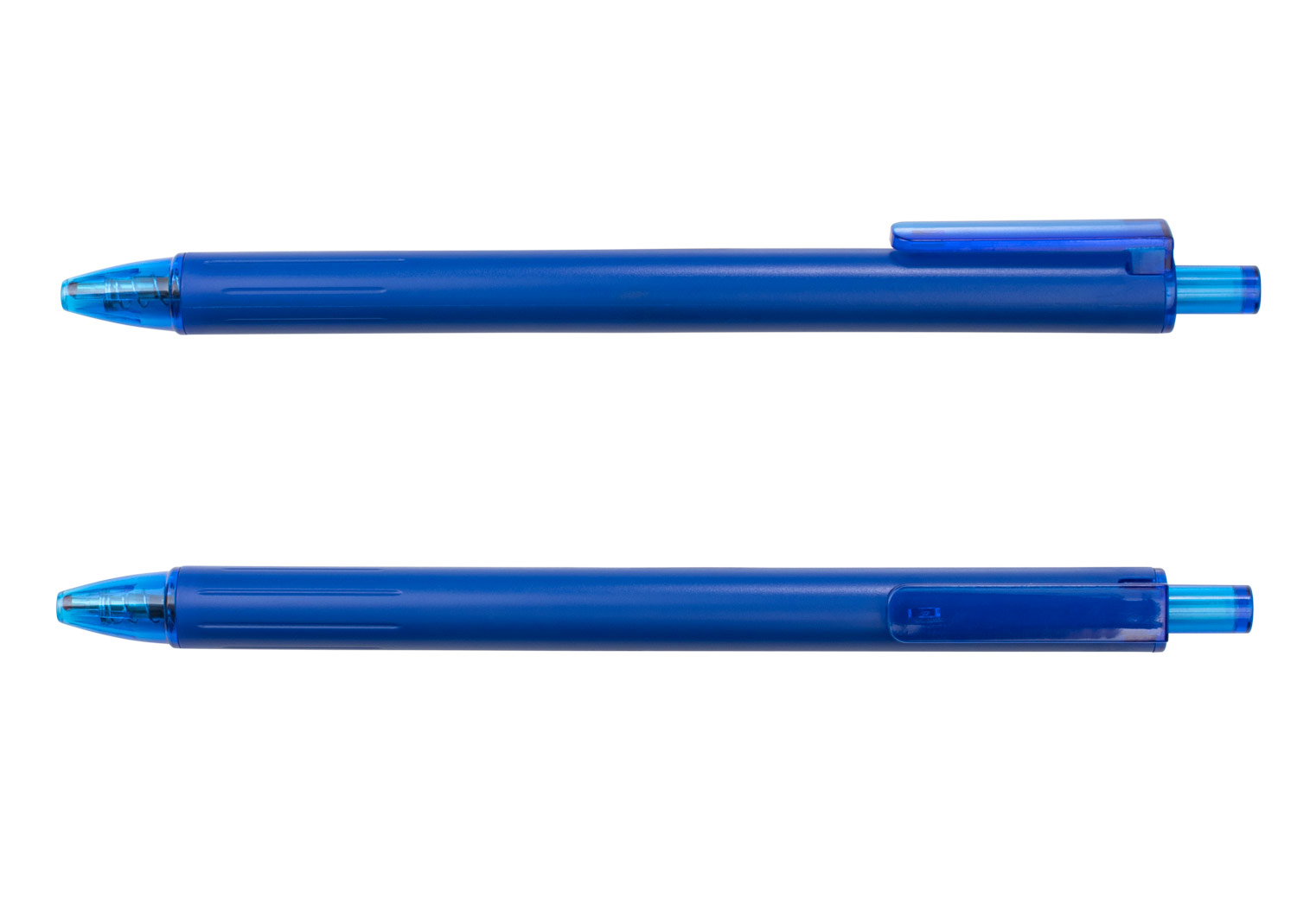Bolígrafo retráctil con barril de color mate que aporta un acabado moderno y profesional. Cuenta con empujador, clip y punta en acabado transparente, que complementan su diseño funcional. Su tinta semi-gel ofrece una escritura suave y continua, ideal para el uso diario en entornos laborales o académicos.