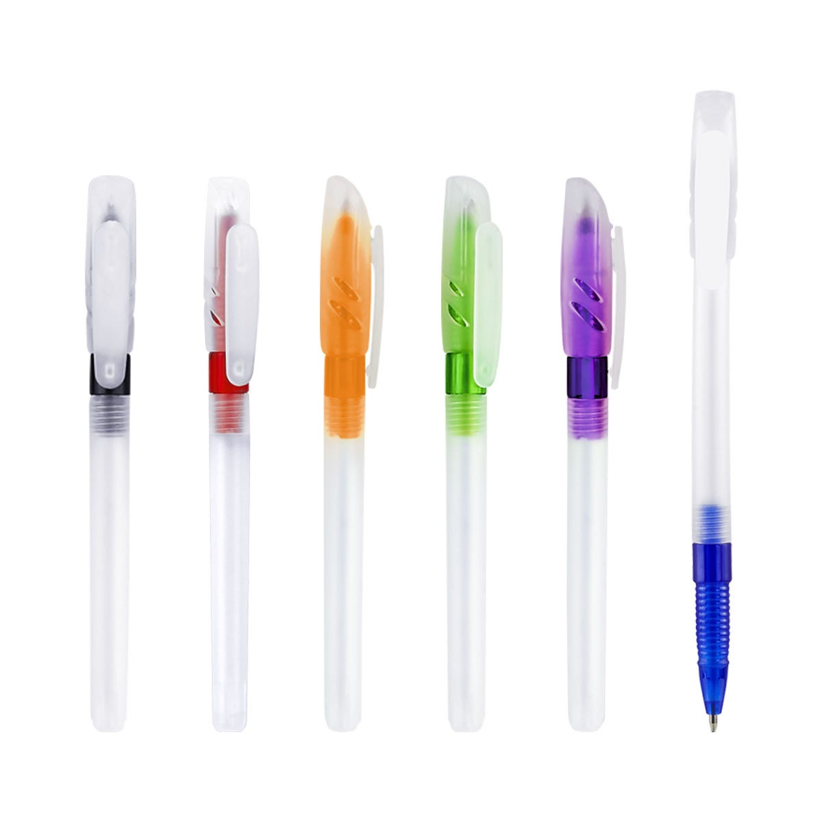 Bolígrafo de plástico con clip transparente. Mecanismo pulsador.